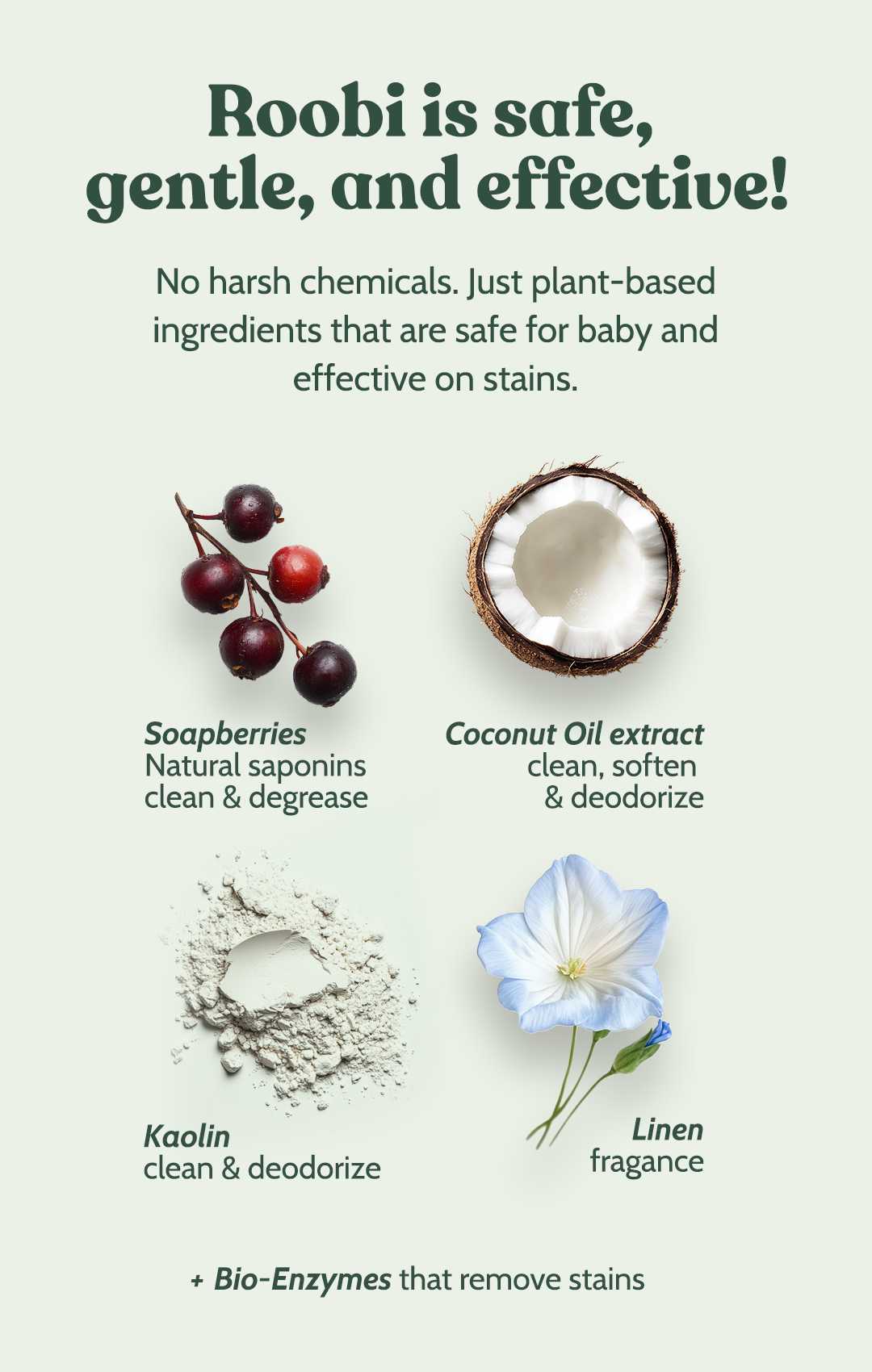 Our laundry sheets are crafted with your family's safety and the planet's health in mind. Made from natural, plant-based ingredients, they deliver a powerful clean without the harsh chemicals. Here's what makes our sheets special: